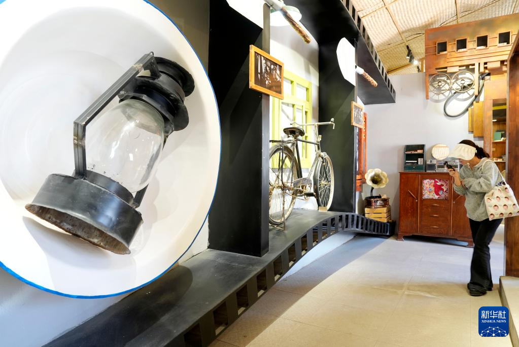 4月9日,游客在石嘴山市大武口区硒有田园参观工业遗产展。