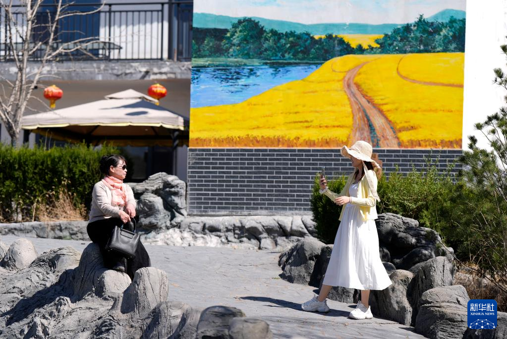 4月9日,游客在石嘴山市大武口区龙泉村游玩。