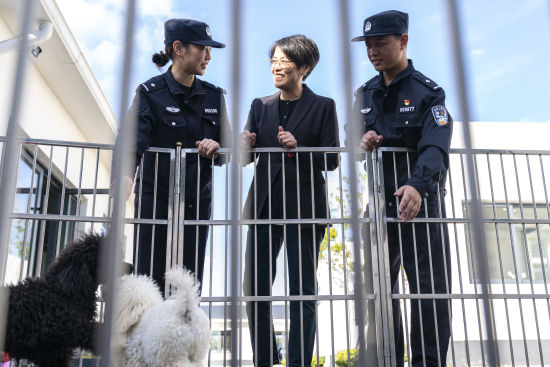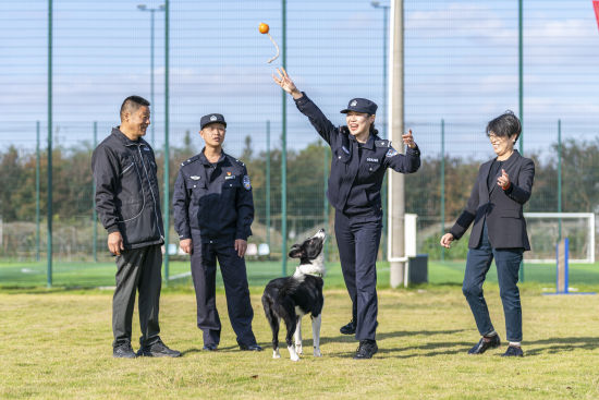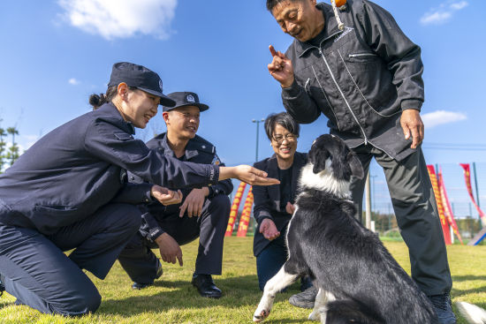民警与工作人员在宠物基地训练场开展安全走访。沈群 摄