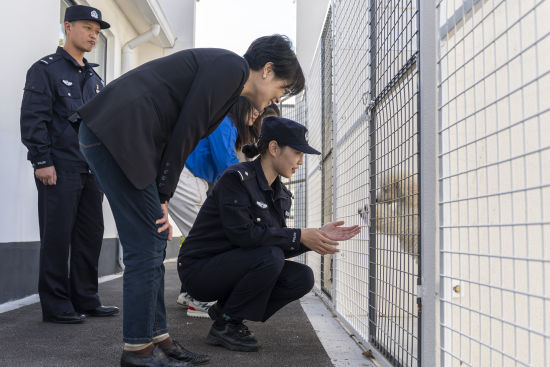 民警与工作人员一同对宠物圈舍开展安全检查。沈群 摄