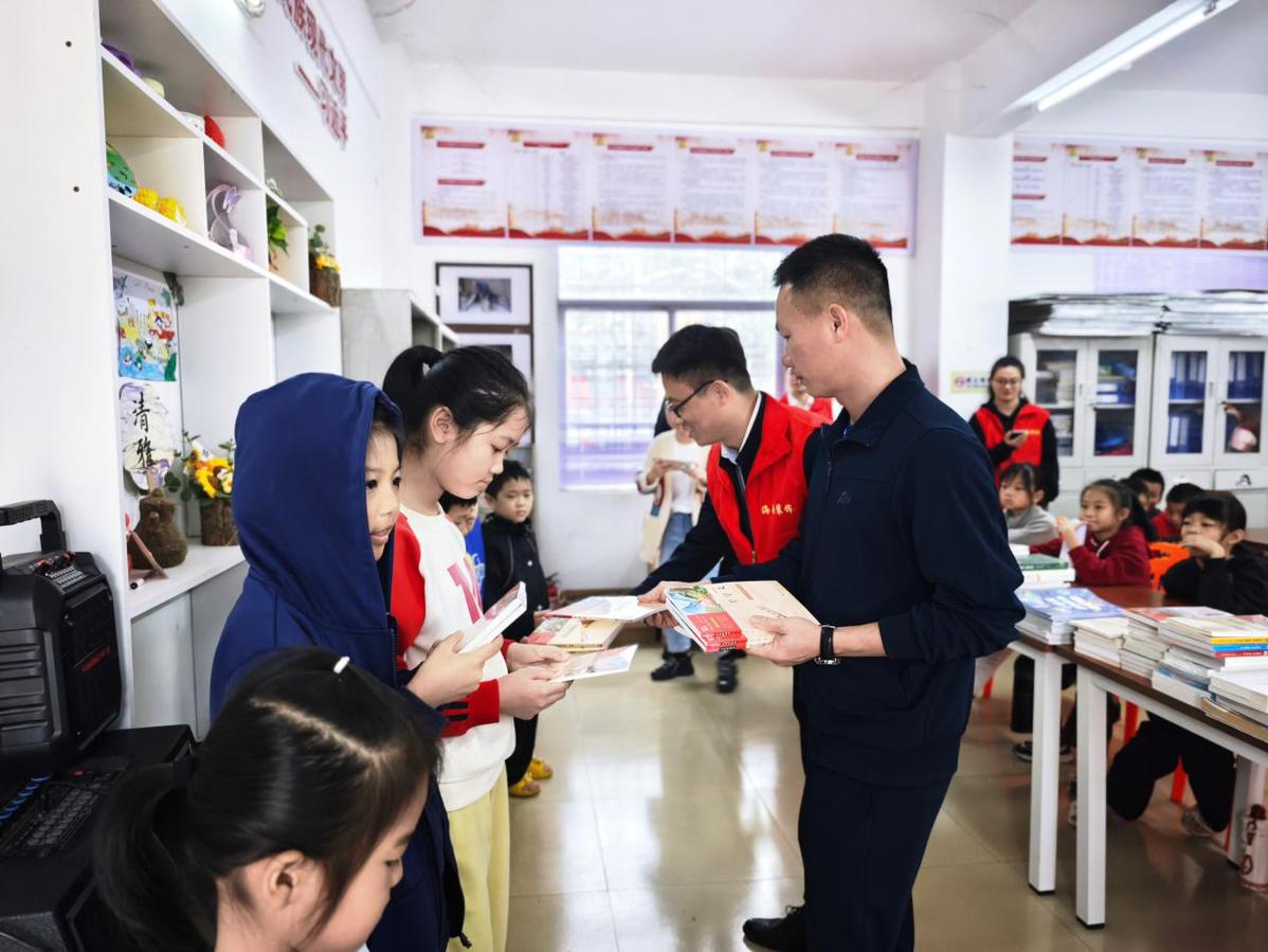 活动现场,赠书仪式率先拉开帷幕。志愿者将300余册精心挑选的图书递到孩子们手中,书籍涵盖童话故事、科学探索、经典文学、心理健康等多个领域,兼顾不同年龄段儿童的阅读需求,为乡村孩子打开了通往广阔世界的知识之窗。同步设立的“候鸟书巢”图书角,刚一亮相便吸引了孩子们的目光,大家纷纷围拢过来,迫不及待地翻阅书籍,在墨香中探寻未知世界,眼中闪烁着对知识的渴望。