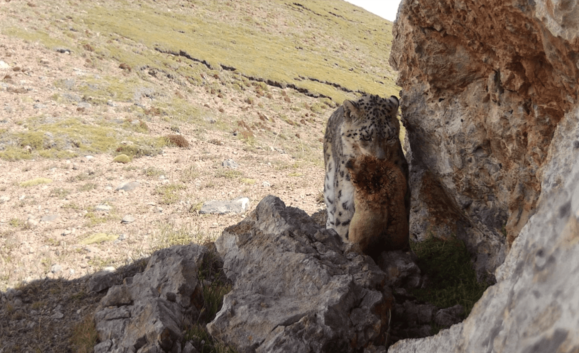土丁扎西拍摄到的雪豹捕食旱獭的画面