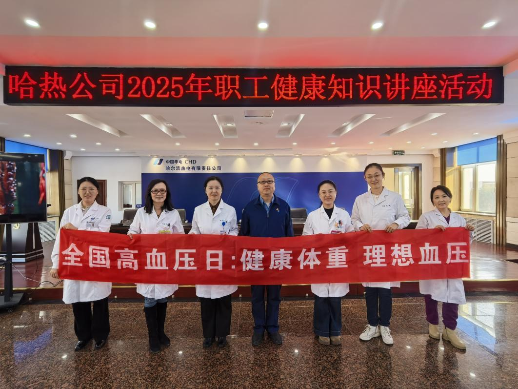 | 10月28日,正值冬季供热保障关键时期,哈尔滨医科大学附属第二医院心内科与体检中心组织专家团队,携手中盐黑龙江盐业集团有限公司,共同走进哈尔滨热电有限责任公司生产一线,开展“全国高血压日”主题健康公益活动。心内科副主任张烁教授带领团队,与体检中心付红梅主任医师团队,为百余名坚守岗位的供热职工送去健康与温暖,通过开展高血压防治知识宣讲、现场义诊和免费血压测量,将专业的健康管理服务直接送到职工身边。