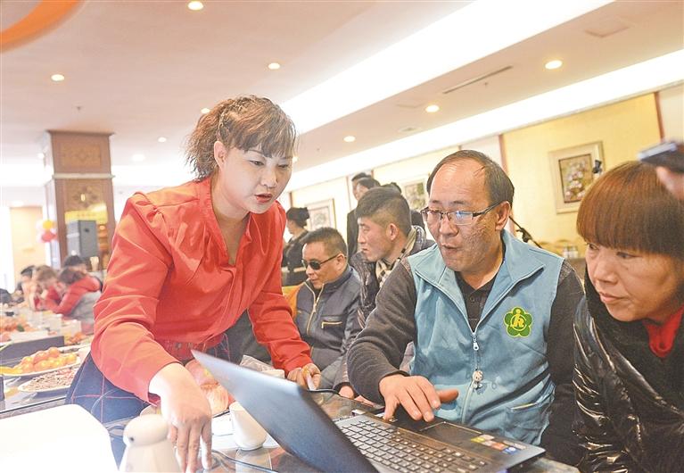 2016年1月24日,在银川市残友迎新联谊会上,白芳(左)组织人员自排自演小节目。(《宁夏日报》原记者 计鹏 摄)