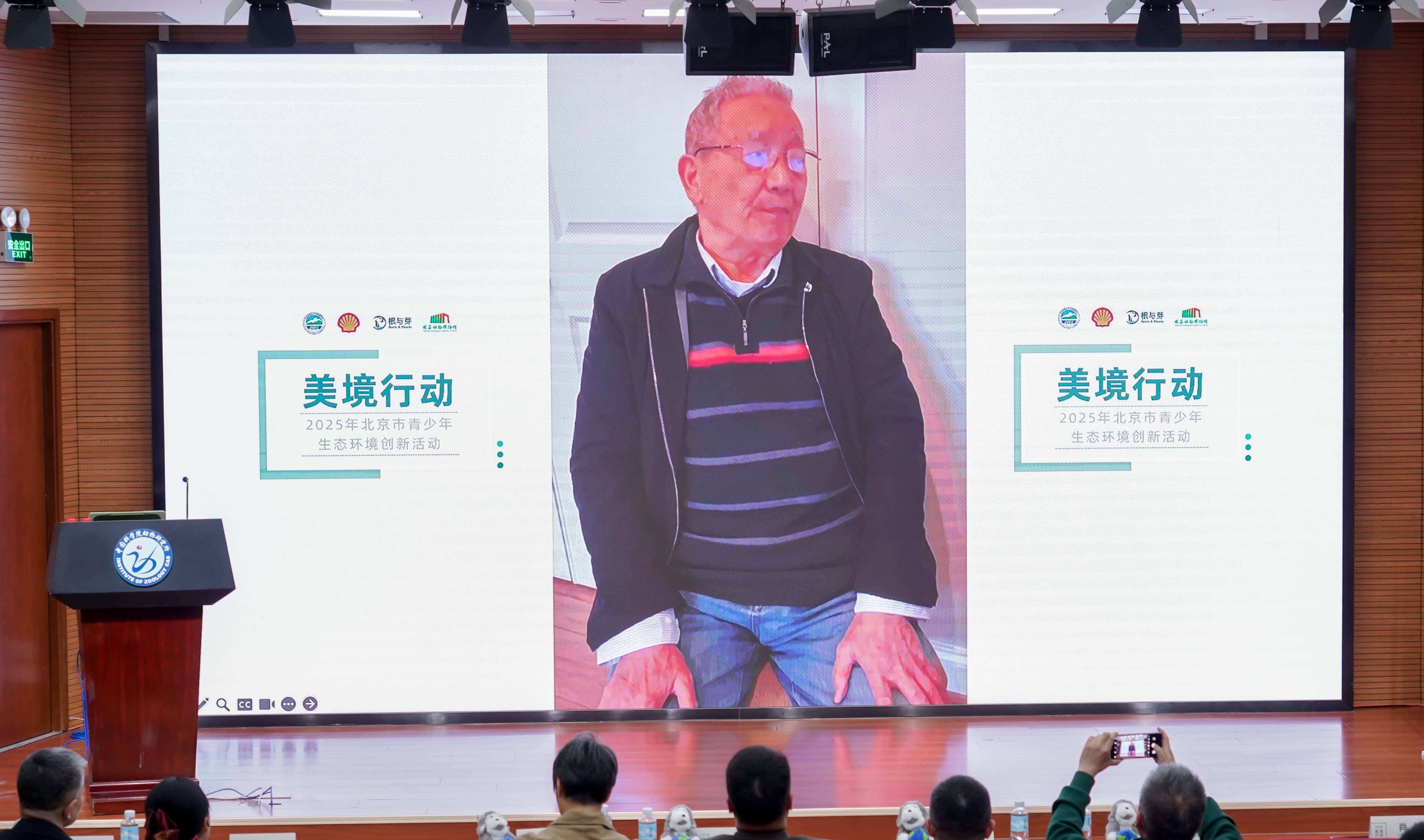 美境行动(北京片区)组委会主任许木启老师通过视频发来“云寄语”,为现场增添温馨氛围。老一辈科学家的深情嘱托与殷切期望,实现了环保精神的代际传承,激励着青少年勇毅奔赴科学探索之路。