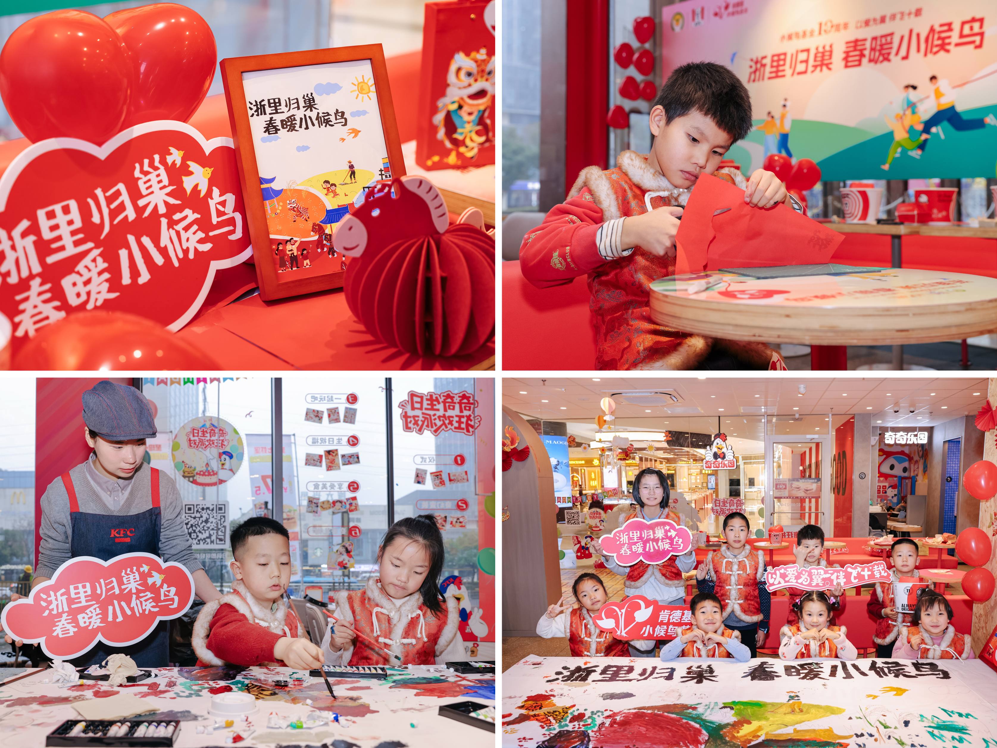 1月30日,杭州肯德基“浙里归巢,春暖小候鸟”迎新春活动在浙江省宁波市温情举办。在浙江省妇女儿童基金会、宁波市北仑区妇联的支持下,活动邀请到宁波市北仑区13位留守、困境家庭的“小候鸟”及家人欢聚一堂,共度了一段充满爱与团圆的午后时光。