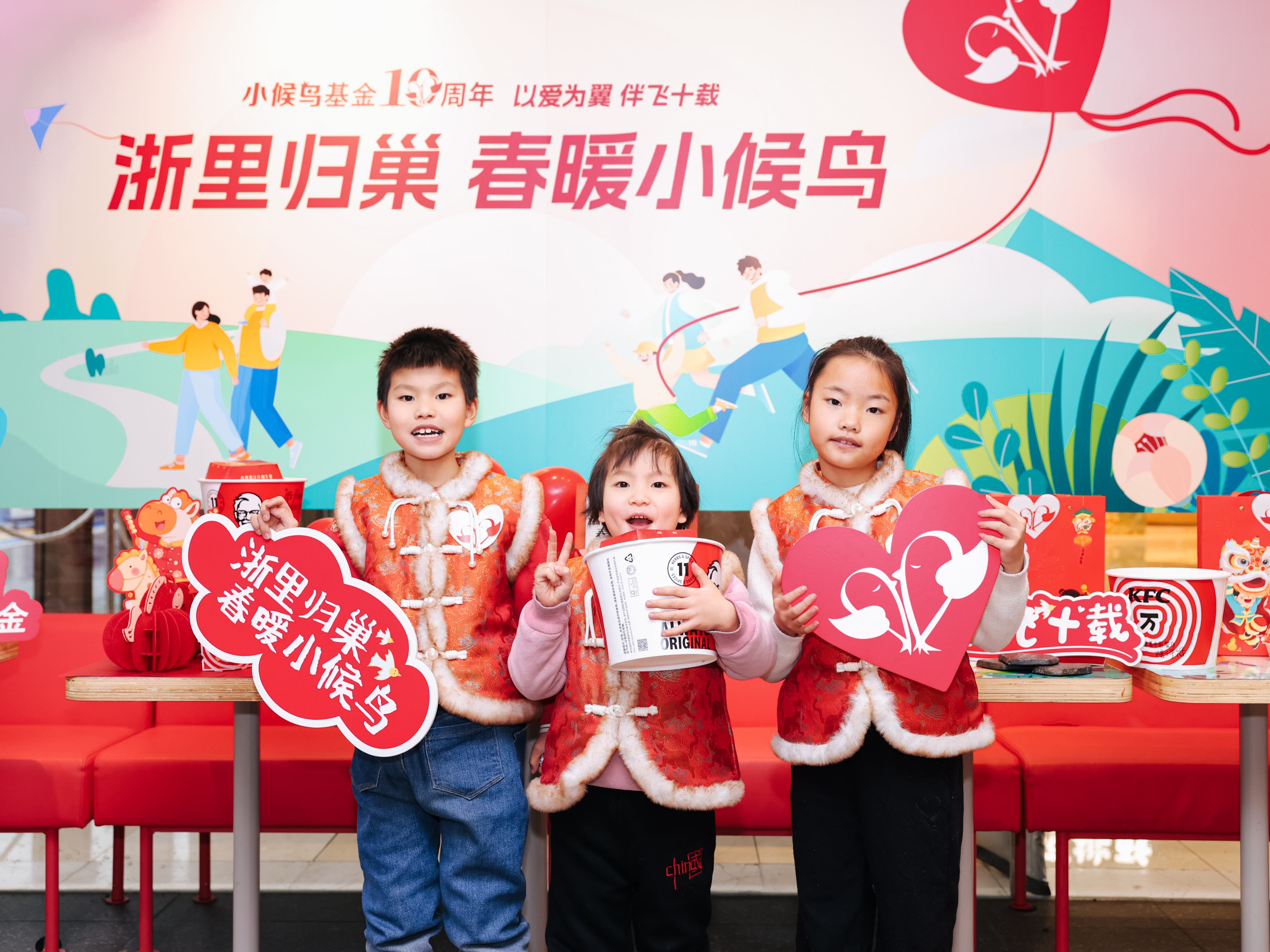 2016年,肯德基携手中国儿童少年基金会成立肯德基小候鸟基金,长期呵护留守、流动和困境儿童的成长。今年,恰逢肯德基小候鸟基金成立十周年。作为十周年系列活动的暖心开篇,此次新春“共赴团圆年,让爱不等候”主题公益行动,不仅延续了十年来对“小候鸟”群体始终如一的关爱承诺,更立足留守、困境儿童的差异化需求,助力“小候鸟”外出务工的父母踏上归乡之路,将远方的牵挂化作眼前实实在在的拥抱。同时,在全国23个城市,邀请“小候鸟”家庭欢聚肯德基餐厅,通过“小候鸟欢聚游园会”丰富多彩的民俗体验和妙趣横生的游戏互动,为“小候鸟”们编织一段洋溢着欢声笑语与浓浓年味的幸福时光。